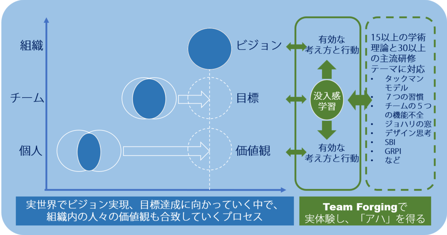 チームフォージングは、チームとリーダーが所属する組織の価値観や目標やビジョンに素早く考え方と行動を合わせられるよう、実世界のチームワーク課題をシミュレートする次世代シリアス・ゲームのイマーシブラーニング(没入型学習)体験をお届けします。
